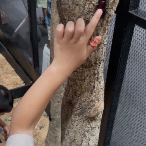 色んな虫に興味津々で、クワガタも直に触ったりしていました。